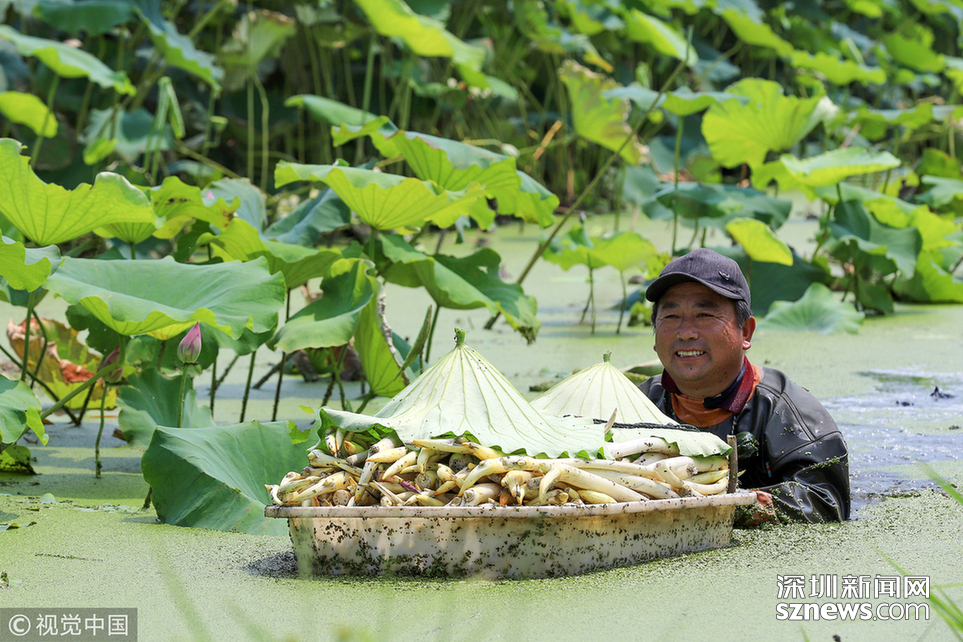 相關(guān)鏈接 烈日下的采藕人 每天采摘千斤荷藕