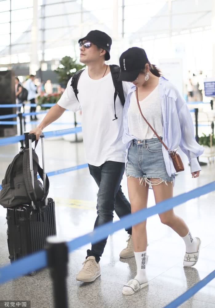 2019年8月19日,長沙,嚴(yán)屹寬、杜若溪夫婦現(xiàn)身機(jī)場。辦完登機(jī)手續(xù)后嚴(yán)屹寬主動拎過所有行李,妥妥的模范老公,而美美的杜若溪素顏亮相,大玩下衣失蹤秀美腿,襪子上的“相當(dāng)暴躁”有點(diǎn)意思!