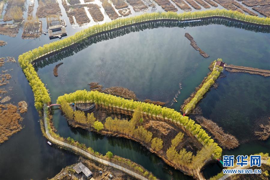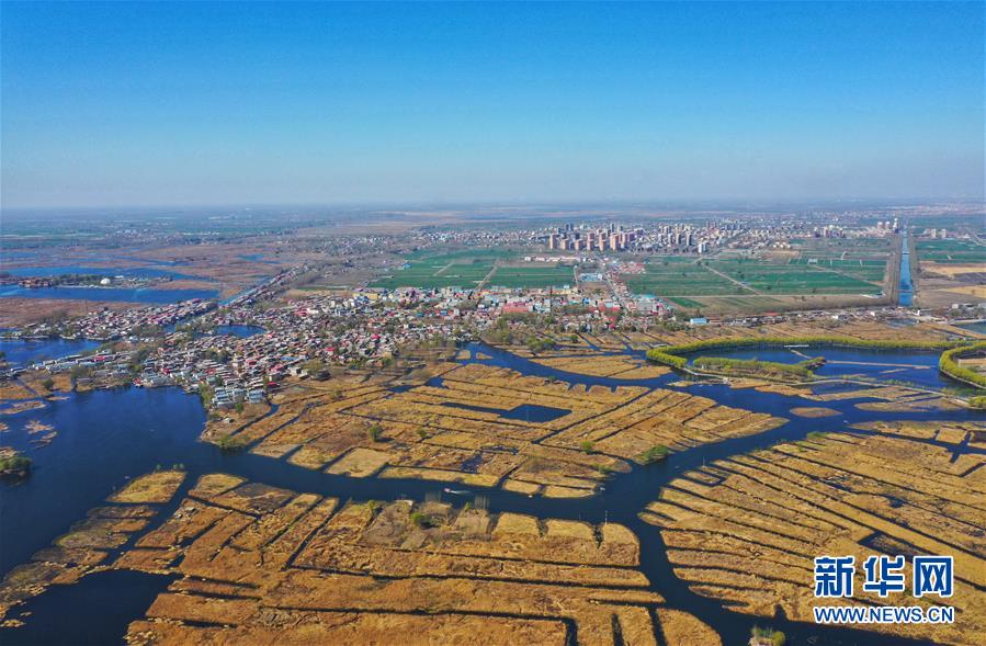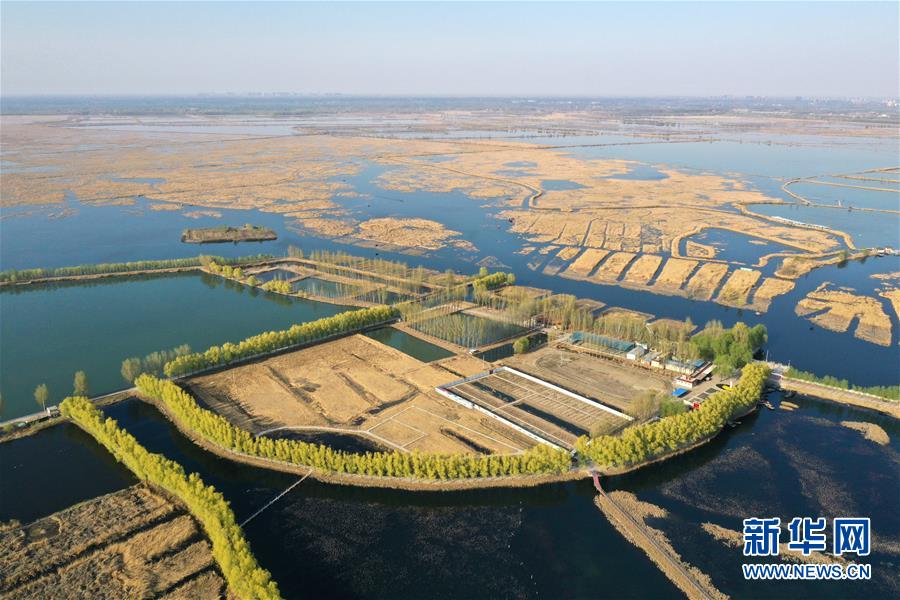 3月31日無人機(jī)拍攝的雄安新區(qū)白洋淀。新華社記者邢廣利攝