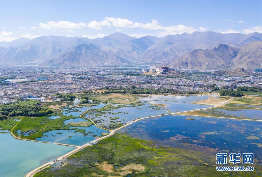 西藏拉魯濕地風(fēng)光(6月5日無人機(jī)拍攝)。新華社記者 普布扎西 攝