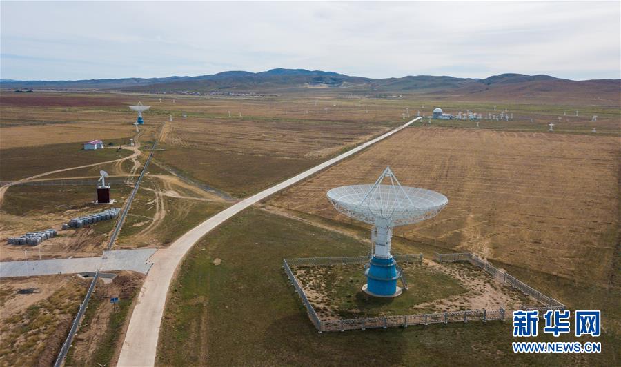 這是9月17日在國家天文臺(tái)明安圖觀測基地拍攝的射電頻譜日像儀天線(無人機(jī)拍攝)。 新華社記者 彭源 攝