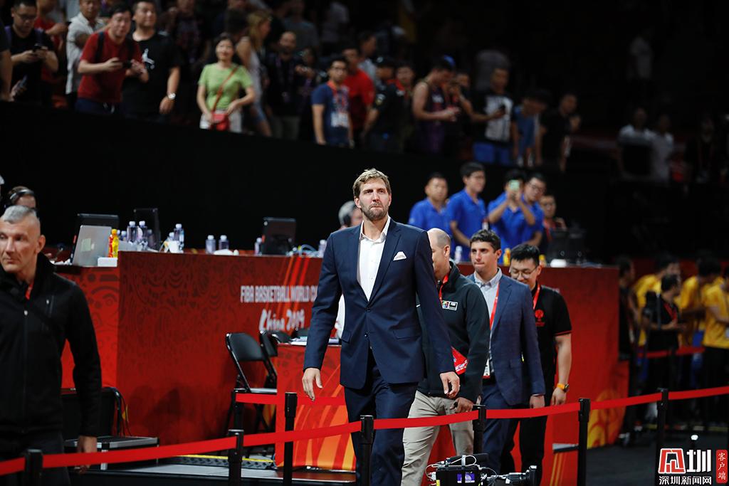 比賽結(jié)束后,德國籍球星諾維斯基來到現(xiàn)場。