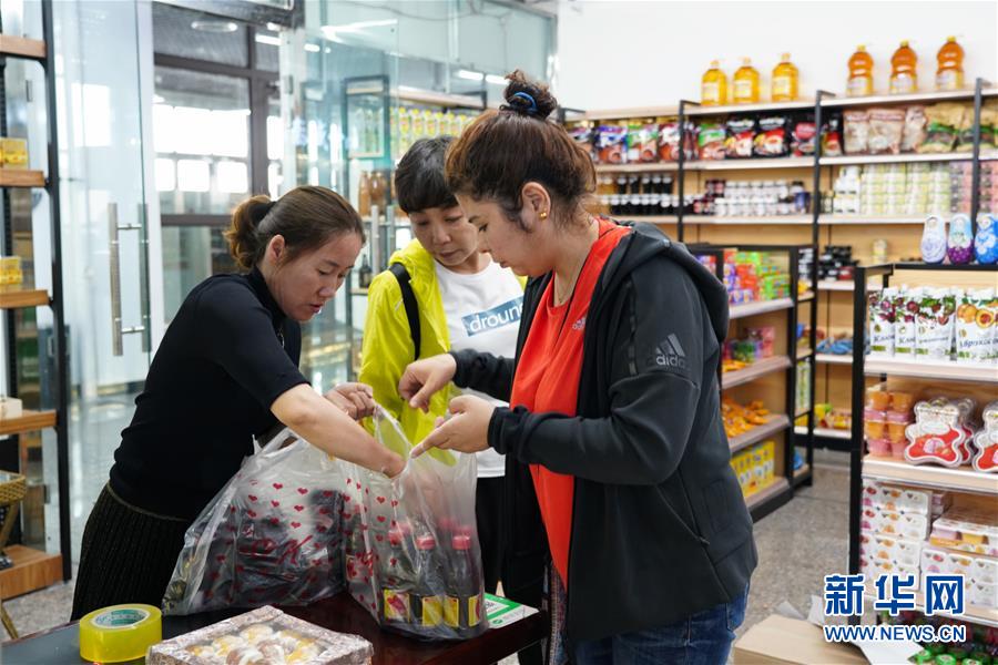 9月4日,在新疆塔城地區(qū)巴克圖口岸,顧客在絲路文化商品城內(nèi)購(gòu)買商品。 新華社記者鄒予攝