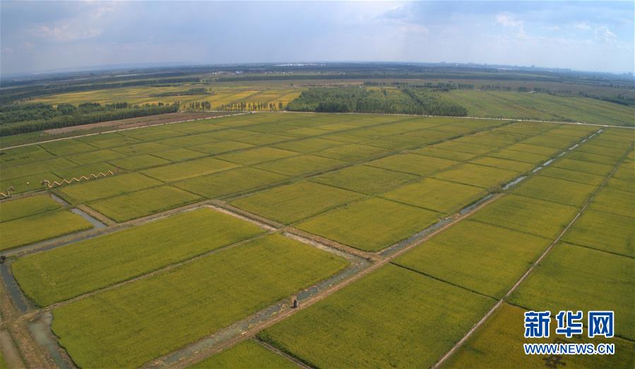 黃河水灌溉的青銅峽市葉盛鎮(zhèn)地三村農田(9月1日無人機拍攝)。新華社記者劉詩平攝