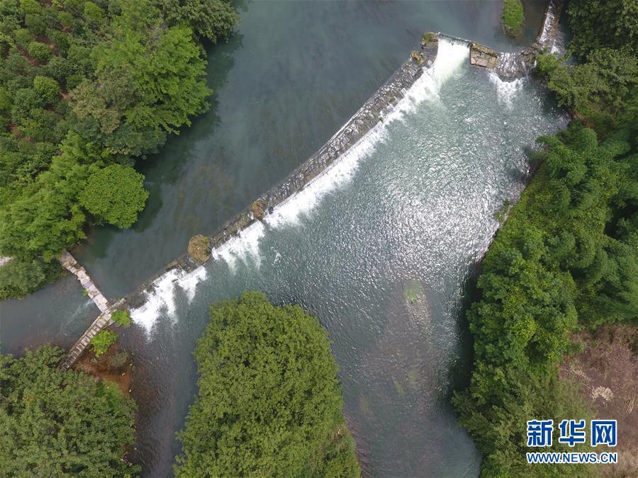 這是廣西興安縣靈渠水道上建設(shè)的灌溉堰壩(2017年6月8日攝)。 新華社記者 陸波岸 攝