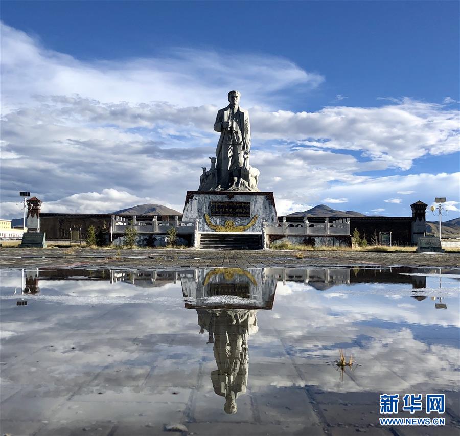 這是在青海省玉樹藏族自治州治多縣用手機拍攝的“環(huán)保衛(wèi)士”杰?!に髂线_杰的雕像(9月12日攝)。新華社記者 鄒樂 攝
