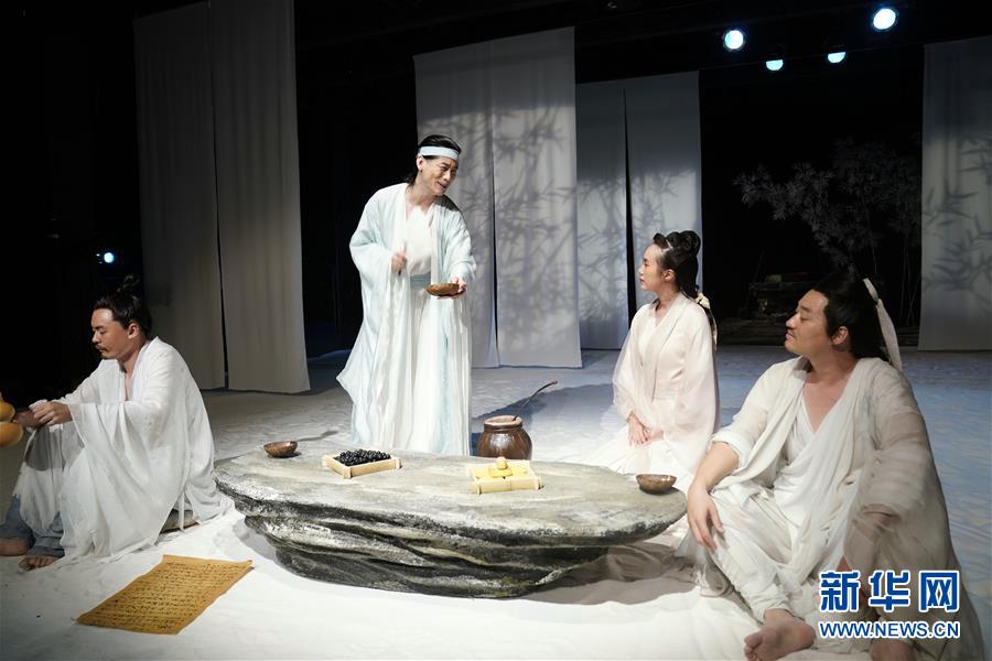 9月16日,演員在話劇《廣陵絕》中表演。 當(dāng)日,話劇《廣陵絕》在北京人藝實(shí)驗(yàn)劇場上演。新華社記者 金良快 攝