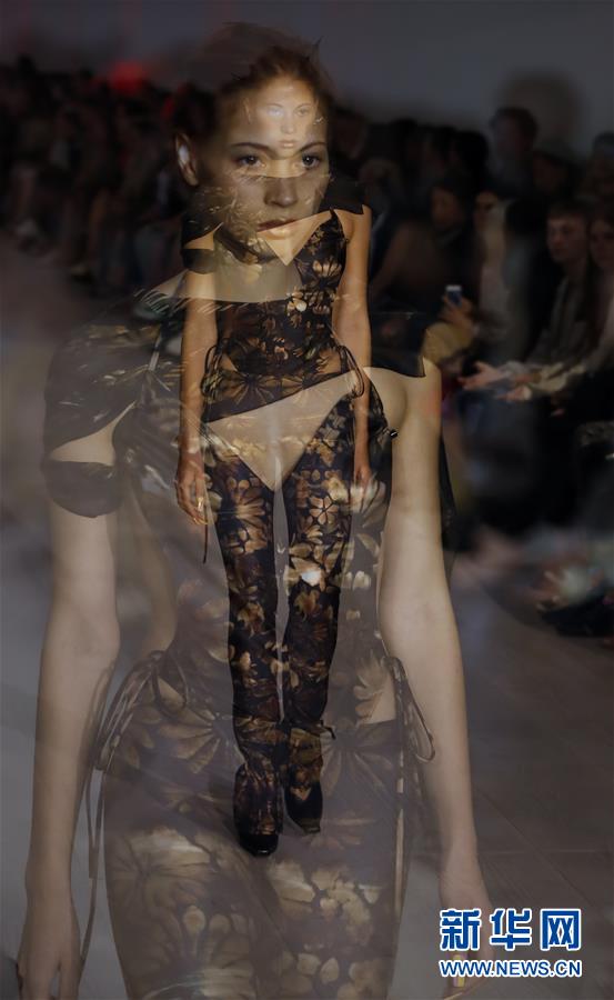 9月17日,在英國倫敦,模特在2020倫敦春夏時(shí)裝周上展示Charlotte Knowles品牌服飾(多重曝光)。 當(dāng)日,2020倫敦春夏時(shí)裝周落幕。 新華社記者 韓巖 攝