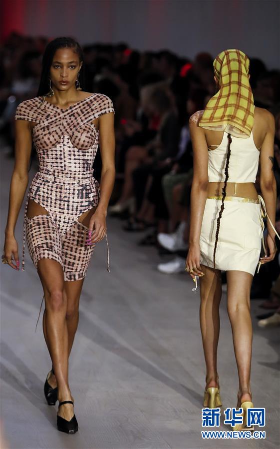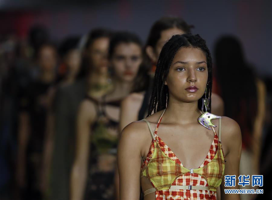 9月17日,在英國倫敦,模特在2020倫敦春夏時(shí)裝周上展示Charlotte Knowles品牌服飾。 新華社記者 韓巖 攝