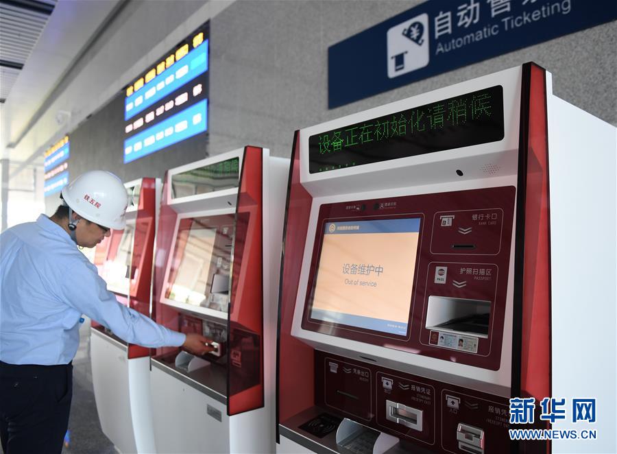 9月18日,工作人員對(duì)京雄城際北京大興站內(nèi)的自動(dòng)售票機(jī)進(jìn)行檢查。新華社記者張晨霖?cái)z