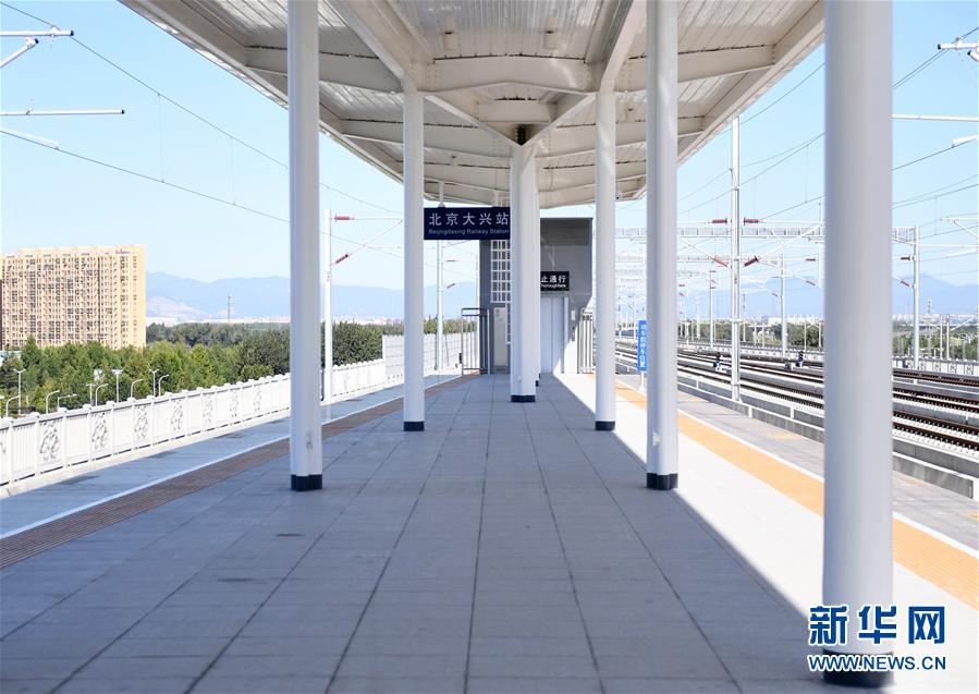 9月18日拍攝的京雄城際北京大興站站臺(tái)。新華社記者張晨霖?cái)z