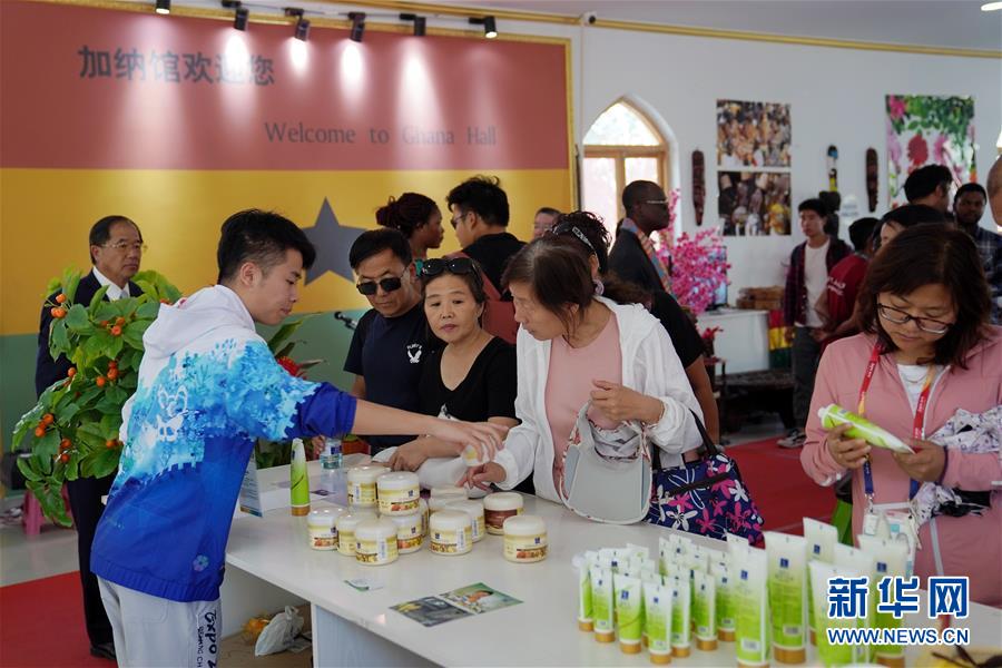 9月18日,參觀者在北京世園會(huì)加納館內(nèi)選購商品。 當(dāng)日,2019年中國北京世界園藝博覽會(huì)“加納國家日”活動(dòng)在北京世園會(huì)園區(qū)舉行。 新華社記者 鞠煥宗 攝