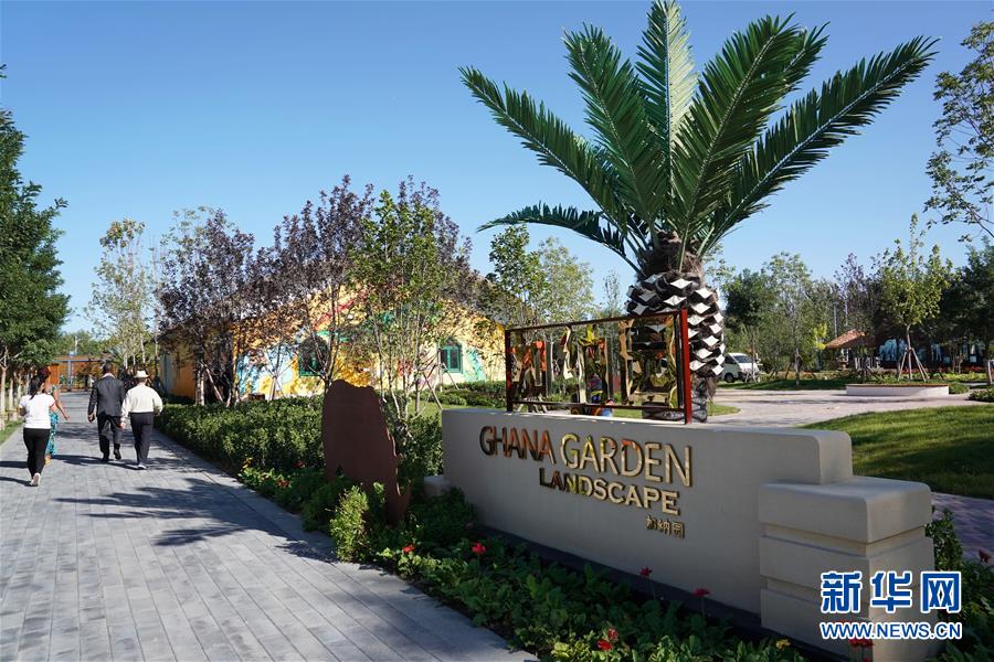 9月18日,參觀者在北京世園會加納展園內(nèi)參觀。新華社記者 鞠煥宗 攝