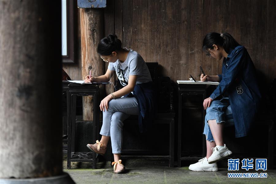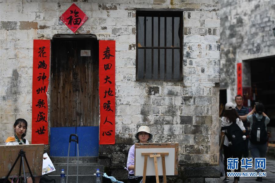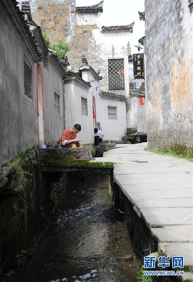 4月24日,繪畫愛(ài)好者在西遞風(fēng)景區(qū)寫生。新華社記者張端攝