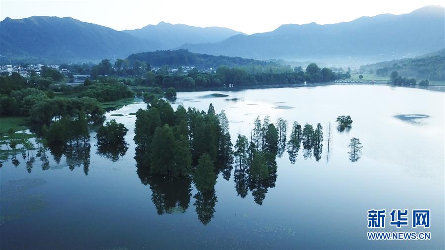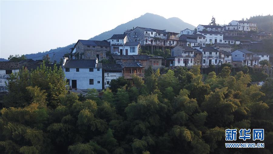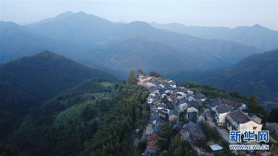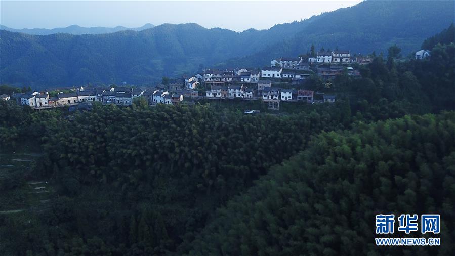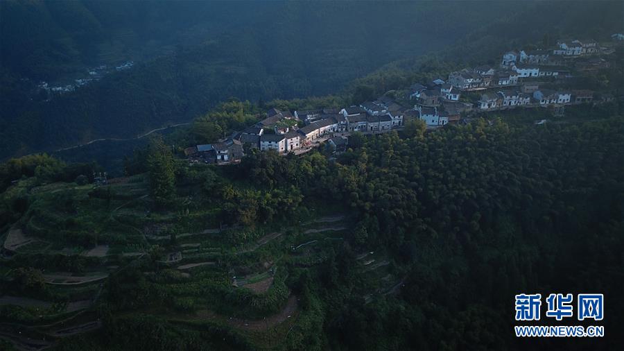 晨曦中的木梨硔村景色(9月18日無(wú)人機(jī)拍攝)。9月18日清晨,地處皖南山區(qū)的安徽省黃山市休寧縣木梨硔村沐浴在晨曦之中,靜謐祥和。新華社記者張端攝