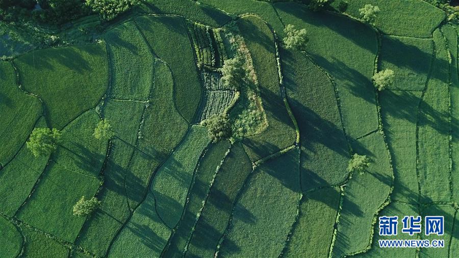 這是8月4日無(wú)人機(jī)拍攝的安徽黟縣宏村風(fēng)景區(qū)附近的農(nóng)田晨景。新華社記者張端攝