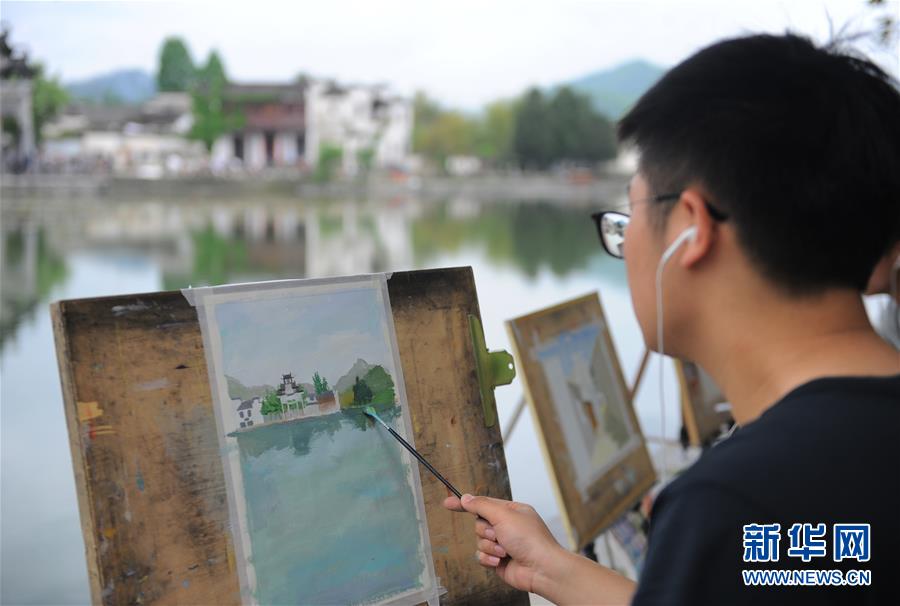 4月24日,繪畫愛(ài)好者在宏村風(fēng)景區(qū)寫生。新華社記者任鵬飛攝
