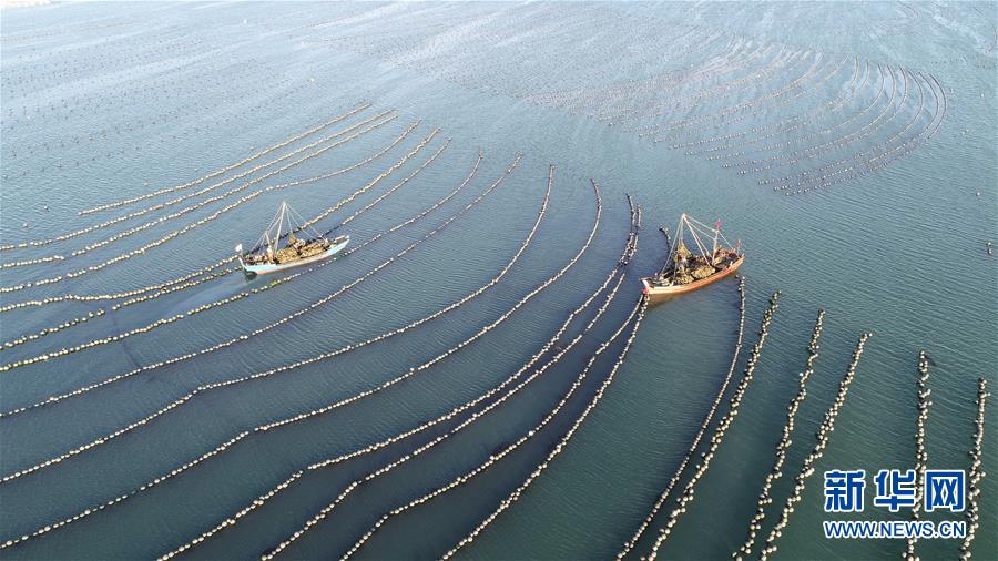 9月23日,漁民在捕撈牡蠣(無人機拍攝)。