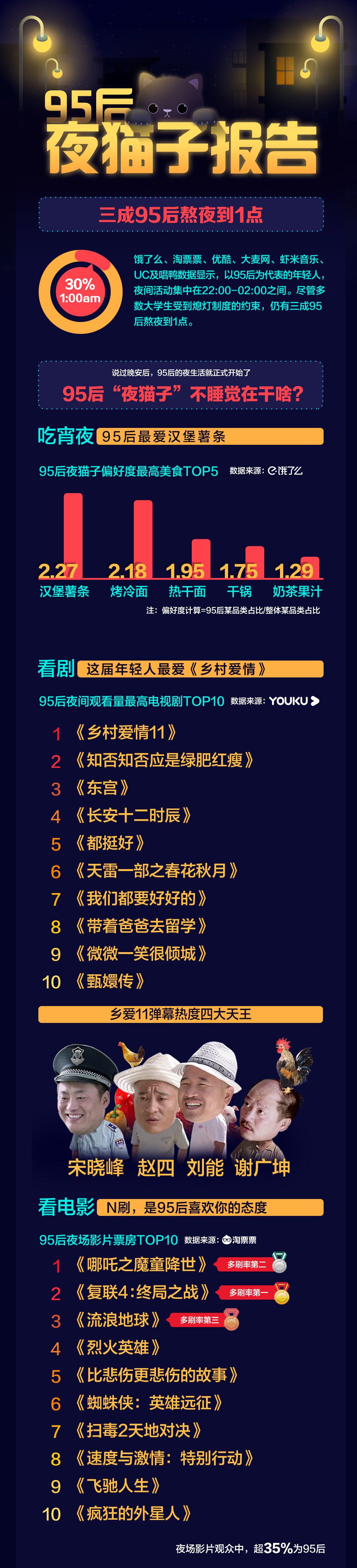 《95后夜貓子報告》顯示,95后年輕人在夜間觀影、追劇、看演出等文化消費領域表現(xiàn)十分活躍;南方城市的95后夜貓子在各項消費活動中表現(xiàn)尤其突出。