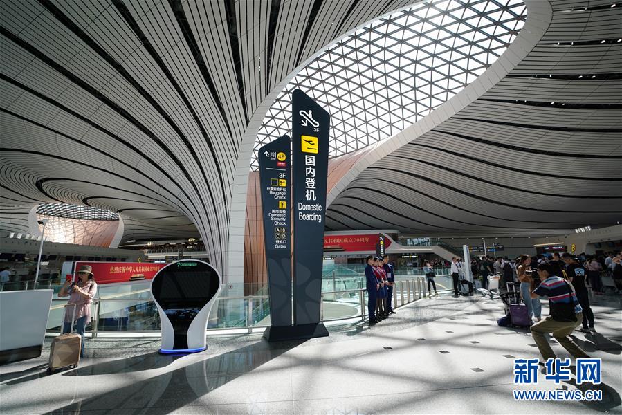 9月25日,乘客在北京大興國(guó)際機(jī)場(chǎng)航站樓內(nèi)登機(jī)。新華社記者張晨霖?cái)z