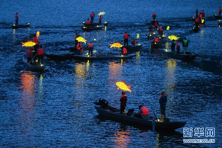 9月25日,在宋村鄉(xiāng)云源港的水面上,漁民劃著漁船,船頭點亮漁燈,構(gòu)成一幅“漁舟唱晚、萬家燈火”的美麗圖景。新華社記者 徐昱 攝