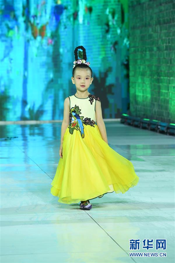 9月25日,小模特在榮昌夏布·張義超非遺時尚大秀上展示時裝設計師張義超的時裝作品 新華社記者 唐奕 攝