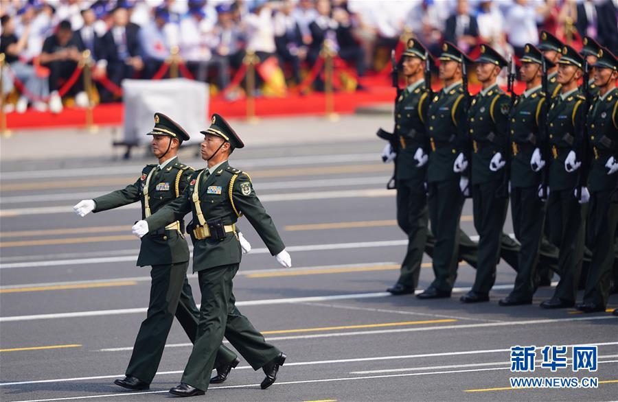 10月1日上午,慶祝中華人民共和國成立70周年大會在北京天安門廣場隆重舉行。這是陸軍方隊通過天安門廣場。新華社記者周密攝