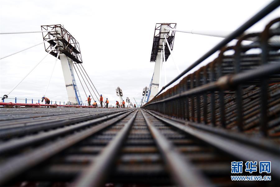 目前,中俄合建的首座跨境公路大橋——黑河到布拉戈維申斯克黑龍江(阿穆爾河)大橋進入橋面鋪裝施工作業(yè)階段。大橋于今年5月31日順利合龍,目前中方每天有約200名工人進行混凝土澆鑄橋面作業(yè),預計橋面施工將持續(xù)到9月上旬。大橋全長1284米,建成后將形成一條新的國際公路通道,實現中俄地方城市之間互聯互通。