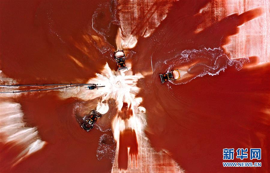 日前,山東省無棣縣境內(nèi)的魯北鹽場(chǎng)進(jìn)入海鹽收獲季節(jié),星羅棋布的鹽池將大地裝扮得繽紛如畫。無棣縣位于山東省北部渤海之濱,全縣擁有鹽田365萬公畝,是我國重要的海鹽生產(chǎn)基地。據(jù)無棣縣工信局統(tǒng)計(jì),今年1-9月份,當(dāng)?shù)卦}產(chǎn)量111.7萬噸。