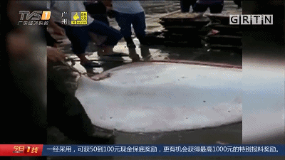 巨型“魔鬼魚”驚現碼頭,300斤!8名壯漢才能拖動?。ㄒ曨l)