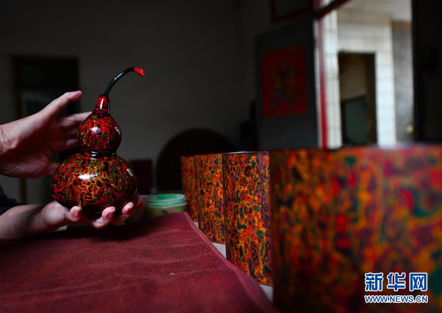 10月12日,丁國(guó)坤在家中對(duì)一件未成形的脫胎漆器進(jìn)行“彩繪”工序。新華社記者胡晨歡攝