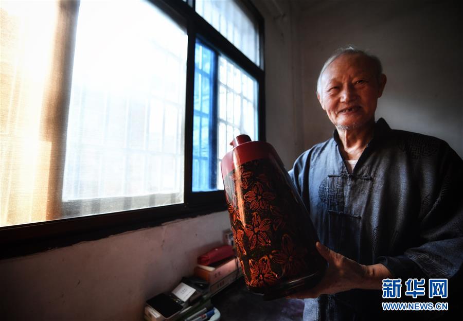 10月12日,丁國(guó)坤在家中檢查最新制成一批脫胎漆器的質(zhì)量。新華社記者胡晨歡攝