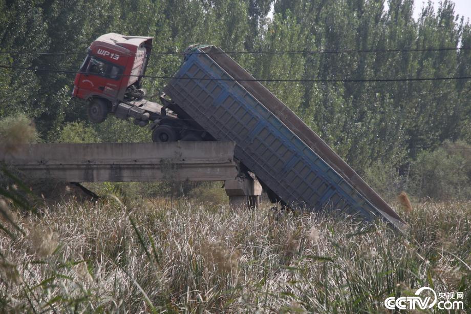 央視網(wǎng)消息:2019年10月13日,山東濱州,一輛滿載貨物的大貨車路過當(dāng)?shù)匾蛔鶎?米左右的小橋時,致使橋面坍塌。據(jù)報道,13日凌晨4點左右,一輛重型半掛貨車沿渤海十八路由南向北行駛至市西辦事處李茂家村附近,右轉(zhuǎn)彎進入連接渤海十八路與李茂家村村西鄉(xiāng)間路的一座寬4米左右的小橋時,致使橋面坍塌?,F(xiàn)場貨車呈翹起之勢,車頭懸于半空中,車尾插入水中,事故未造成人員傷亡。據(jù)現(xiàn)場了解,該橋建設(shè)于1974年,橋頭有警示標識,警示承載4噸。目前救援工作正在緊張有序地進行中。視覺中國