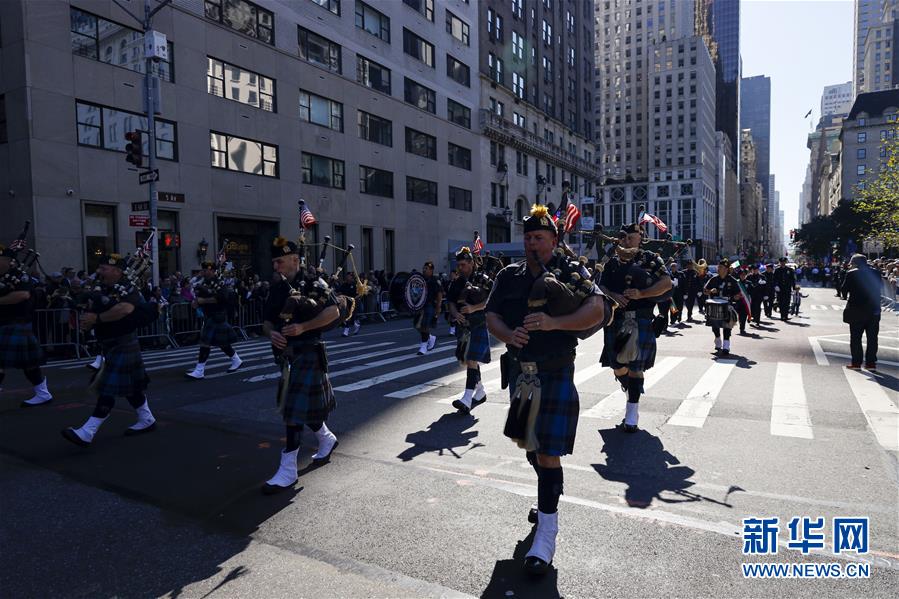 10月14日,在美國紐約曼哈頓第五大道,人們參加哥倫布日游行。當天,紐約舉行哥倫布日游行,紀念意大利航海家克里斯托弗·哥倫布首次到達美洲大陸。哥倫布日游行也是美國最大的展示意大利文化傳統(tǒng)的慶?;顒?。新華社記者李木子攝