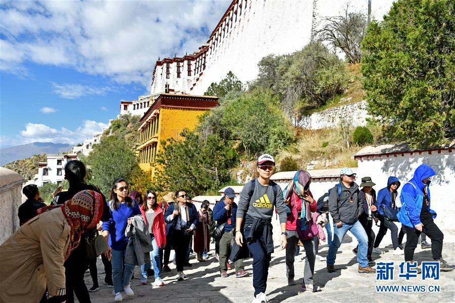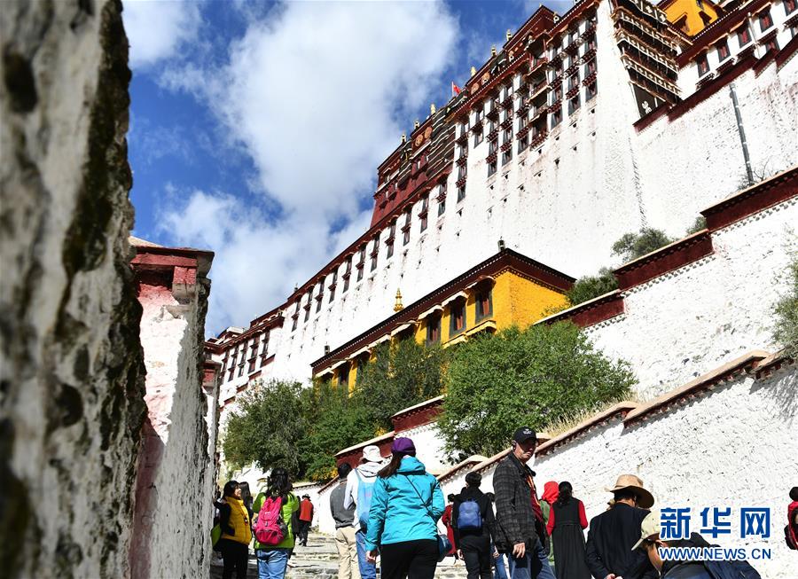 10月15日,游客在布達(dá)拉宮景區(qū)游覽。 根據(jù)西藏自治區(qū)《第三輪“冬游西藏”市場促進(jìn)優(yōu)惠政策》,第三輪“冬游西藏”時段為2019年10月15日至2020年3月15日,共計5個月。除寺廟景區(qū)外,全區(qū)國有3A級(含3A級)以上景區(qū)免費(fèi)游覽,國有3A級以下和非國有A級景區(qū)門票在淡季價格基礎(chǔ)上減半。 新華社記者 李鑫 攝
