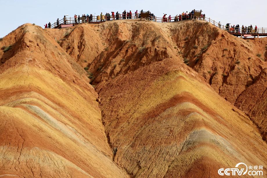 央視網(wǎng)消息:2019年10月15日,金秋時(shí)節(jié),位于甘肅省張掖市臨澤縣的七彩丹霞景區(qū)進(jìn)入旅游旺季,吸引眾多游人紛至沓來(lái)。張掖七彩丹霞景區(qū),分布面積約50公里,是中國(guó)北方干旱地區(qū)發(fā)育最典型的丹霞地貌。在方圓數(shù)十平方公里的范圍內(nèi),隨處可見(jiàn)有紅、黃、橙、綠、白等多種鮮艷的色塊或線條,把一座座山峰,一條條溝壑,裝點(diǎn)成一幅幅絢麗多姿、燦爛奪目的畫圖。圖片來(lái)源:視覺(jué)中國(guó)