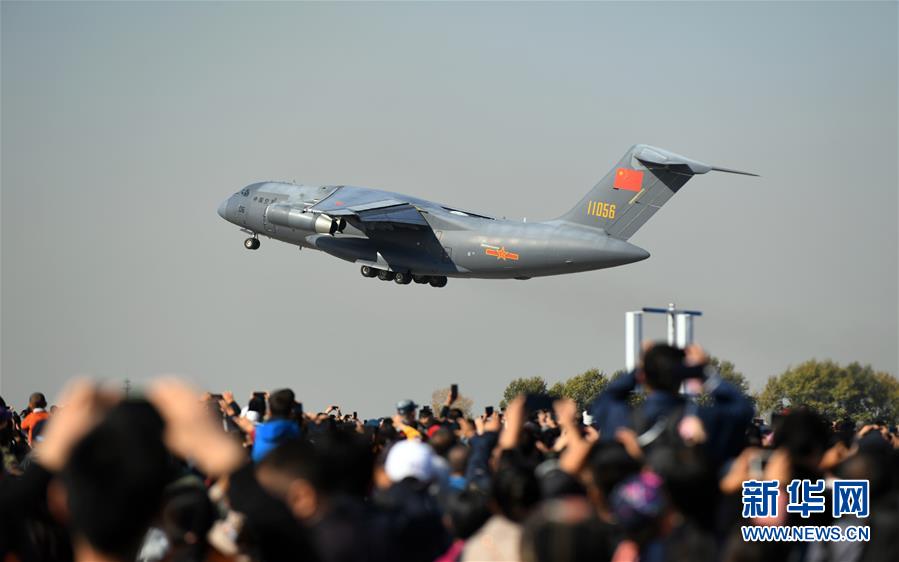 10月17日,大型運輸機運-20進行飛行展示。 新華社記者 林宏 攝