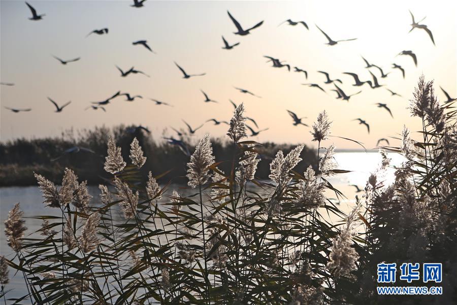 這是10月17日拍攝的居延海岸邊的水鳥(niǎo)。 新華社記者 彭源 攝