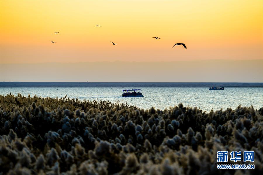 這是10月17日拍攝的日出時分的居延海風(fēng)光。 新華社記者 彭源 攝