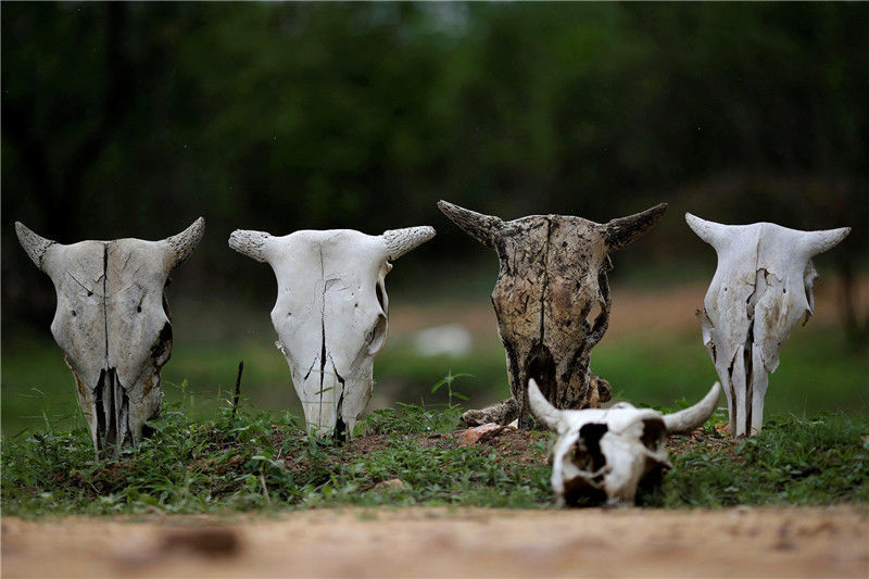 當(dāng)?shù)貢r間2017年2月11日,巴西帕拉伊巴,路上牛的頭骨。