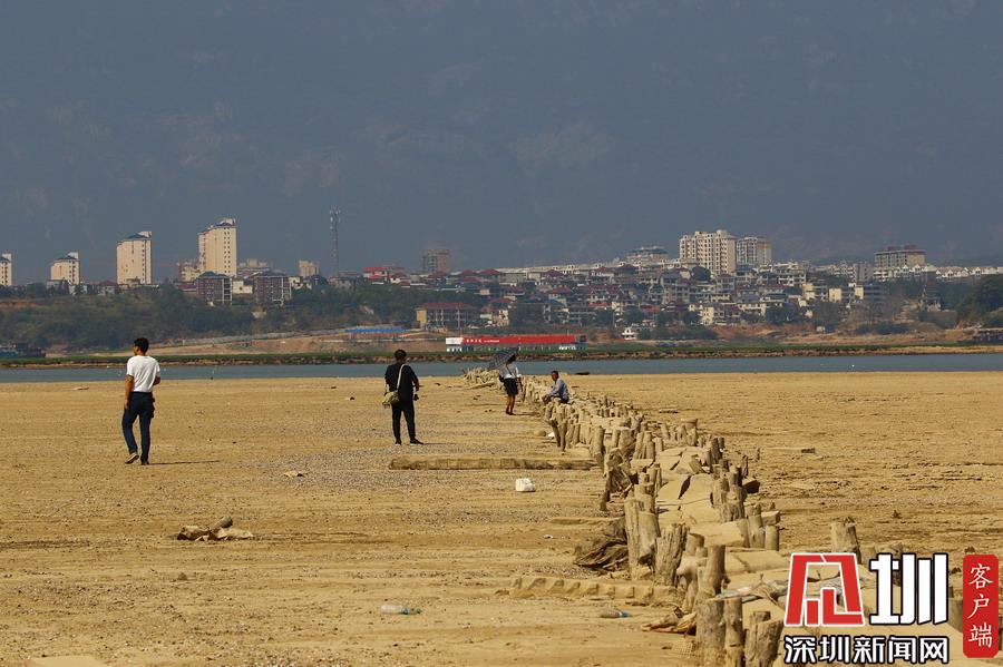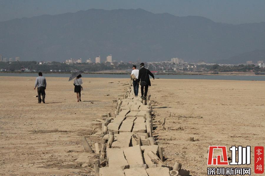 江西九江,隨著水位持續(xù)下降,豐水期浸泡在鄱陽湖底被譽(yù)為“中國最長的湖中古木石橋”露出水面。