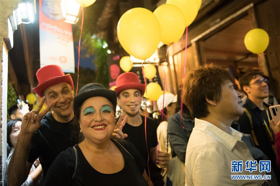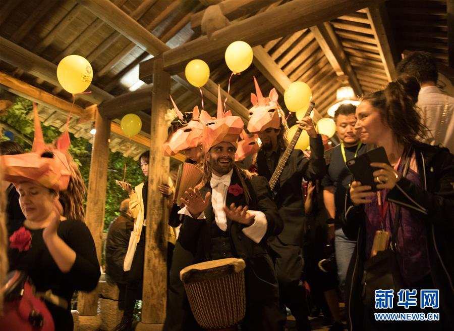 10月25日,戲劇演員和愛(ài)好者參加古鎮(zhèn)嘉年華巡游。新華社記者翁忻旸攝