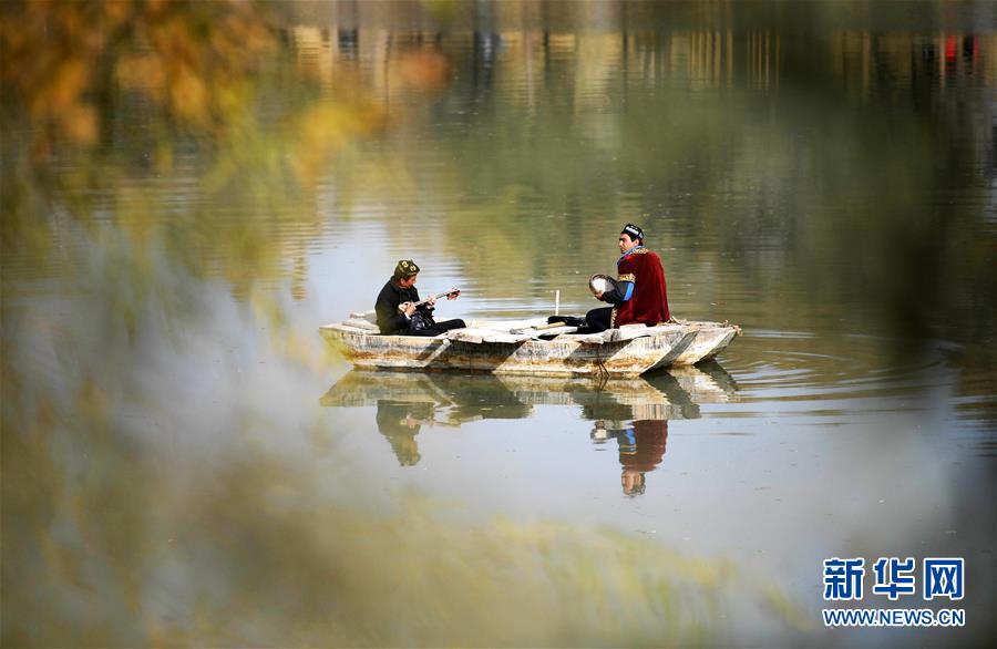 10月26日,民間藝人在新疆阿瓦提縣刀郎部落景區(qū)表演節(jié)目。