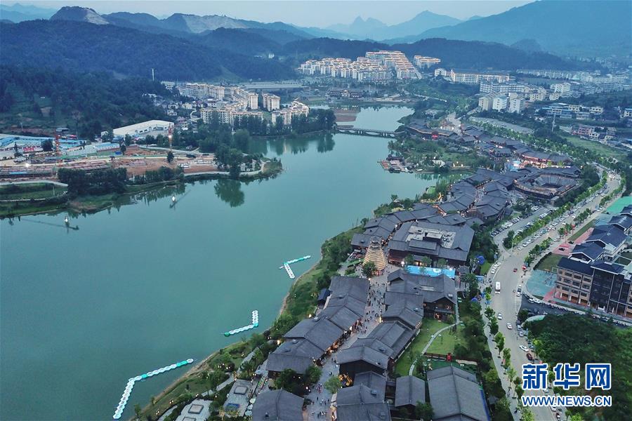 7月2日無人機(jī)拍攝的丹寨萬達(dá)小鎮(zhèn)一角。2017年7月,貴州省丹寨縣的丹寨萬達(dá)小鎮(zhèn)對(duì)外開放。兩年來,丹寨萬達(dá)小鎮(zhèn)游客接待量持續(xù)增長(zhǎng),為700余名貧困戶提供就業(yè)崗位,有力助推了丹寨縣的脫貧攻堅(jiān)工作。新華社記者歐東衢攝