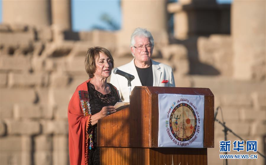 10月27日,在位于埃及阿斯旺的菲萊神廟,中非藝術(shù)節(jié)創(chuàng)始人蘇海爾·阿卜杜勒-卡迪爾在開幕式上發(fā)言。 新華社記者 鄔惠我 攝