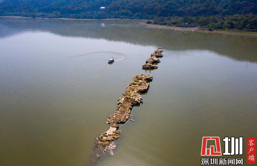 江西新余仙女湖水位下降 明代萬年橋再現容顏