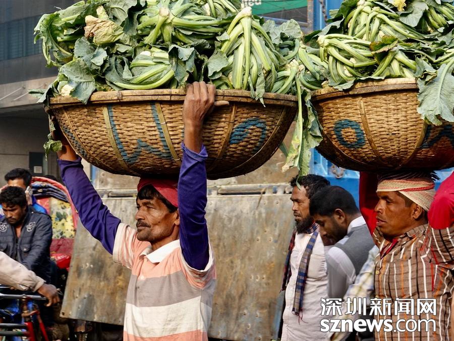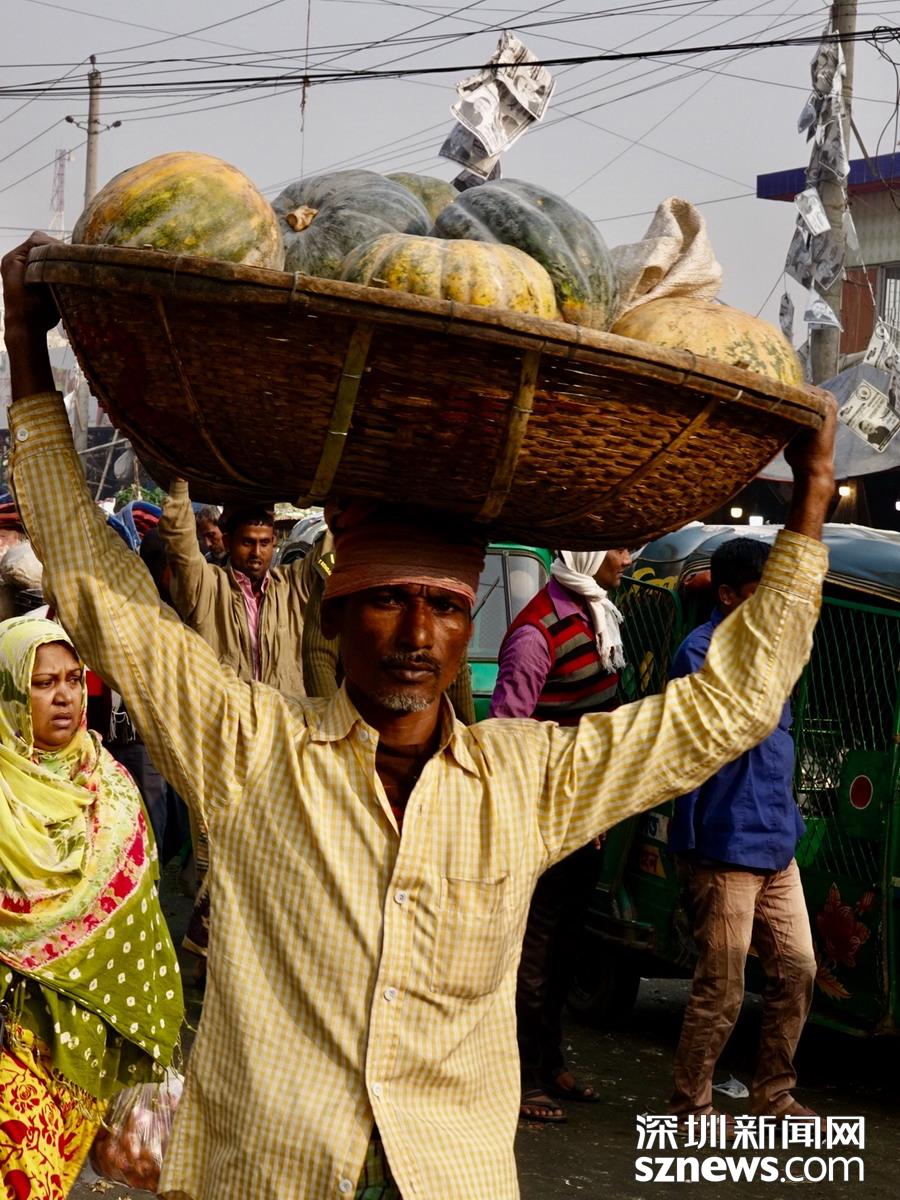深圳新聞網2019年1月8日訊在孟加拉,無論城市,還是鄉(xiāng)下,人們頭頂重物的情景,確實是無處不在的。李仁奇攝