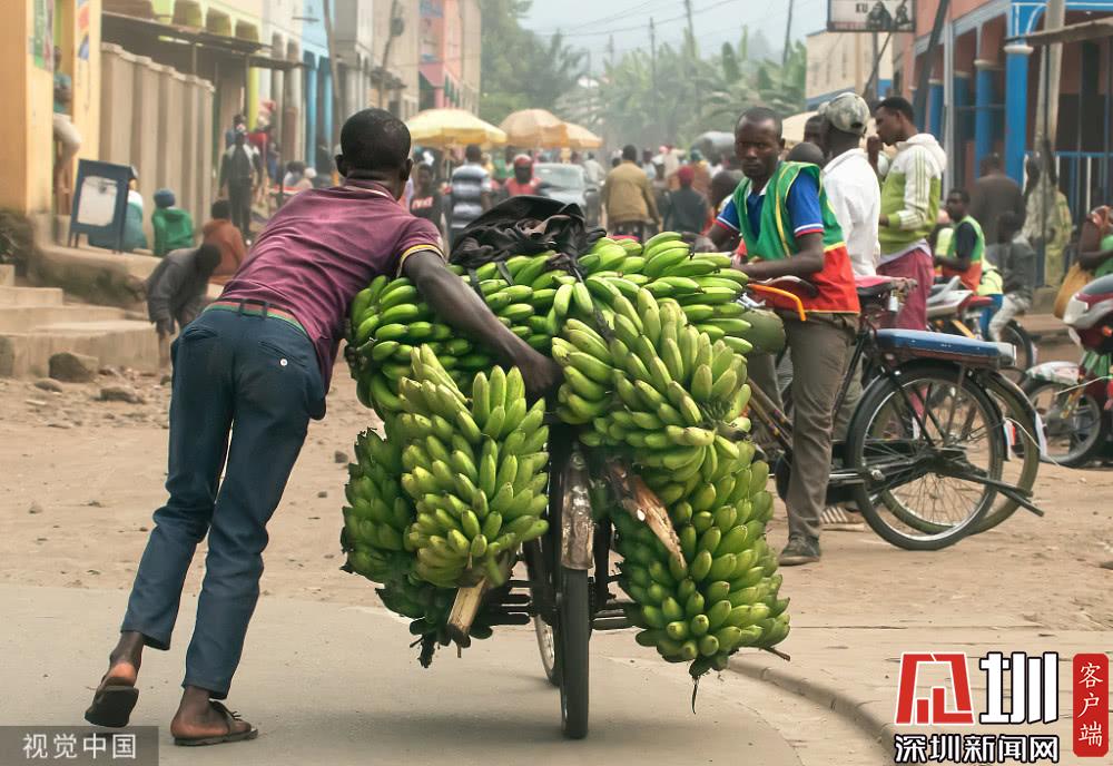 盧旺達,剛果和鄰國盧旺達的工人們每次要走20英里(約32公里)來運輸他們的貨物。從小村莊、農場到城鎮(zhèn)里的市場,很多不同的貨物,如床墊和卷心菜都被小心地固定在了自行車上,它們要被掛著走很遠的路,之后到市場上被賣掉。一張圖拍攝的是一個人騎著一輛自行車,車后面載了7種不同顏色的床墊。很多自行車上都綁著裝大土豆的麻袋,這些麻袋重達30英石(約18千克),工人們將會把它們運到市場上賣掉。