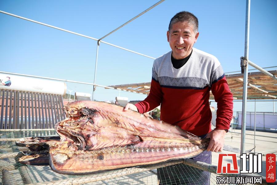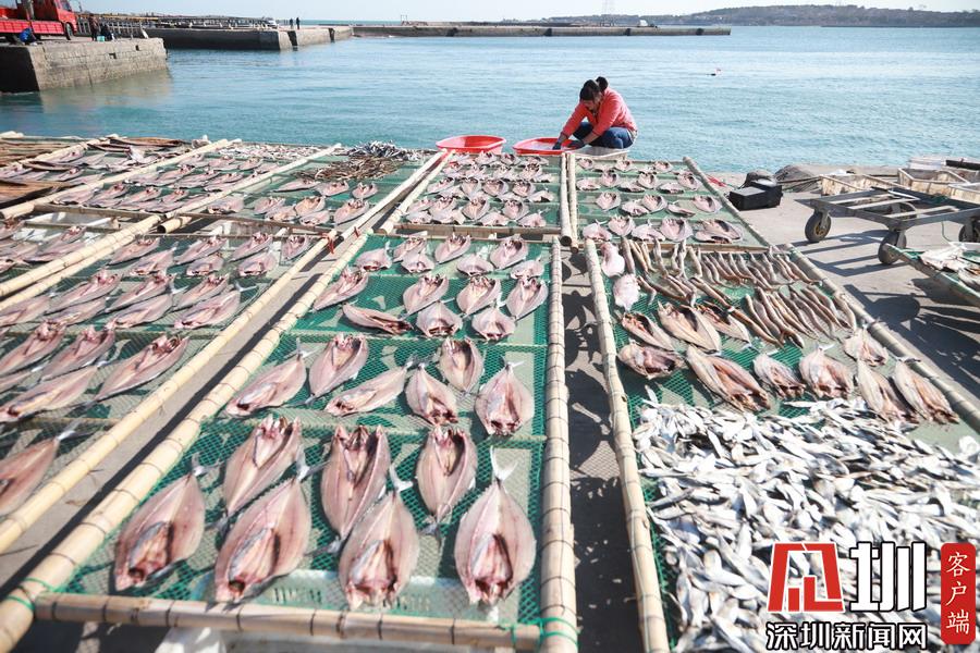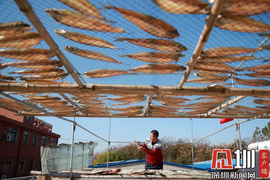 在暖陽之下,成片晾曬的海魚干成為了漁家一道獨具特色的民俗景象。