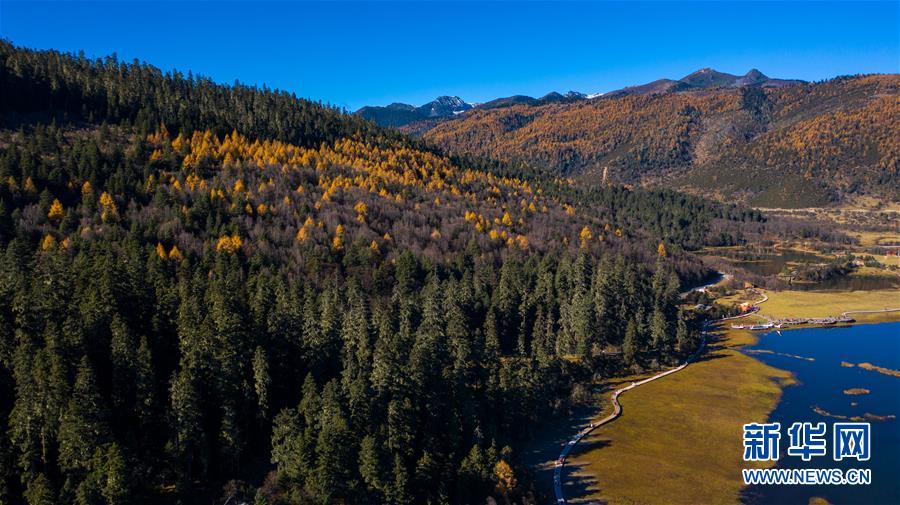 這是無人機(jī)拍攝的普達(dá)措國家公園一景(11月6日攝)。 新華社記者 胡超 攝